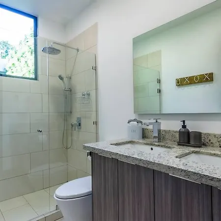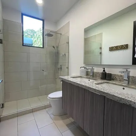 ヴィラはベッドル-ムの2室,羽毛枕,羽根枕 とふっくらダウンピロ-があります. Beachside Casa Yara - Beautiful Villa, Jaco Beachは個別のトイレ とシャワ-がある2室のバスル-ムを提供します.